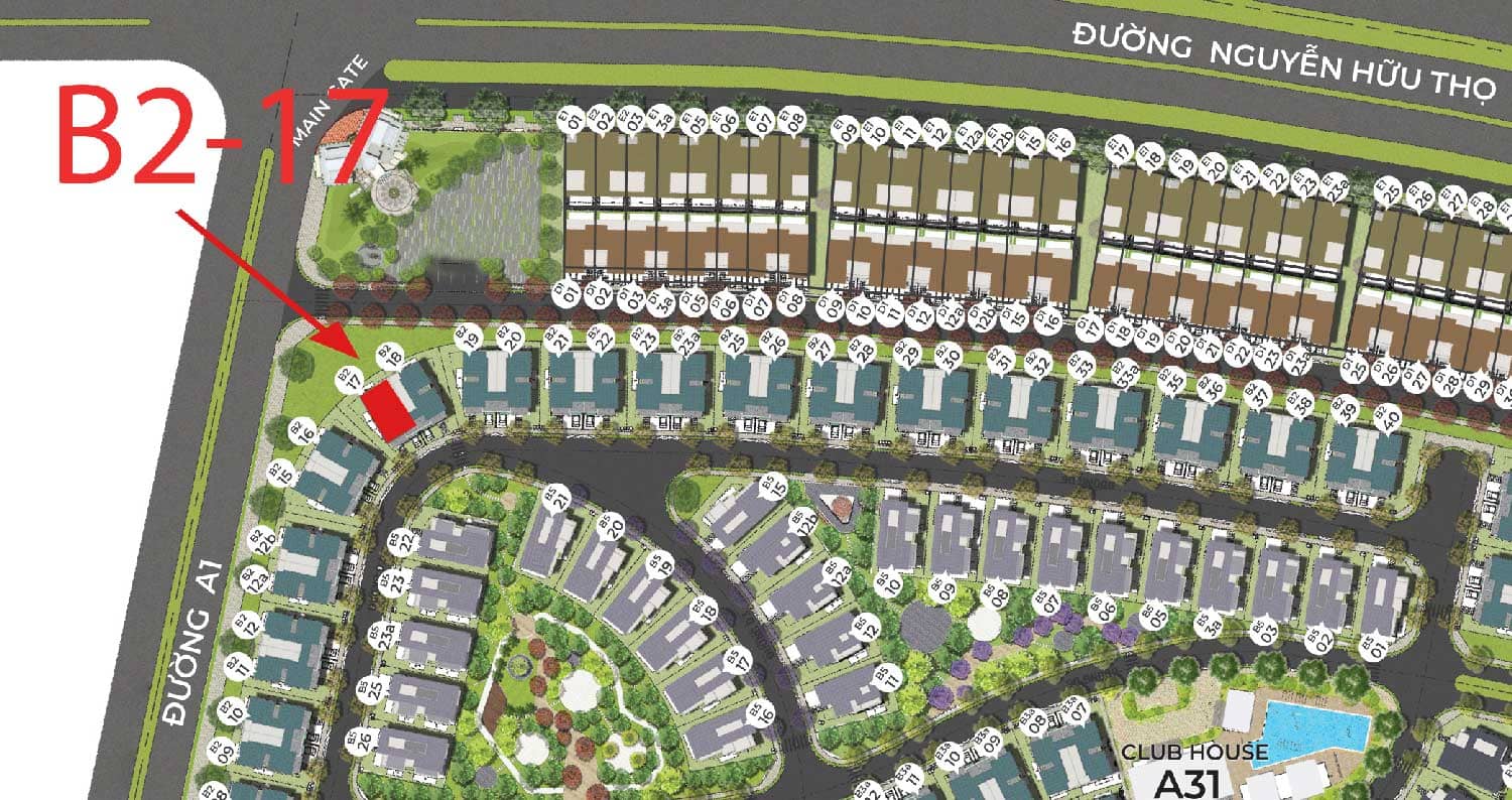 Bên cạnh đó, căn biệt thự này liền kề với khu shophouse Zeitgeist Nhà Bè nên việc mua sắm, ăn uống tại khu phố thương mại cũng dễ dàng, thuận tiện. Căn biệt thự song lập 200m2 B2-17 này chỉ cách Khu Vườn Mùa Hè 1 một con đường nội bộ và 1 lối đi bộ nhỏ!
